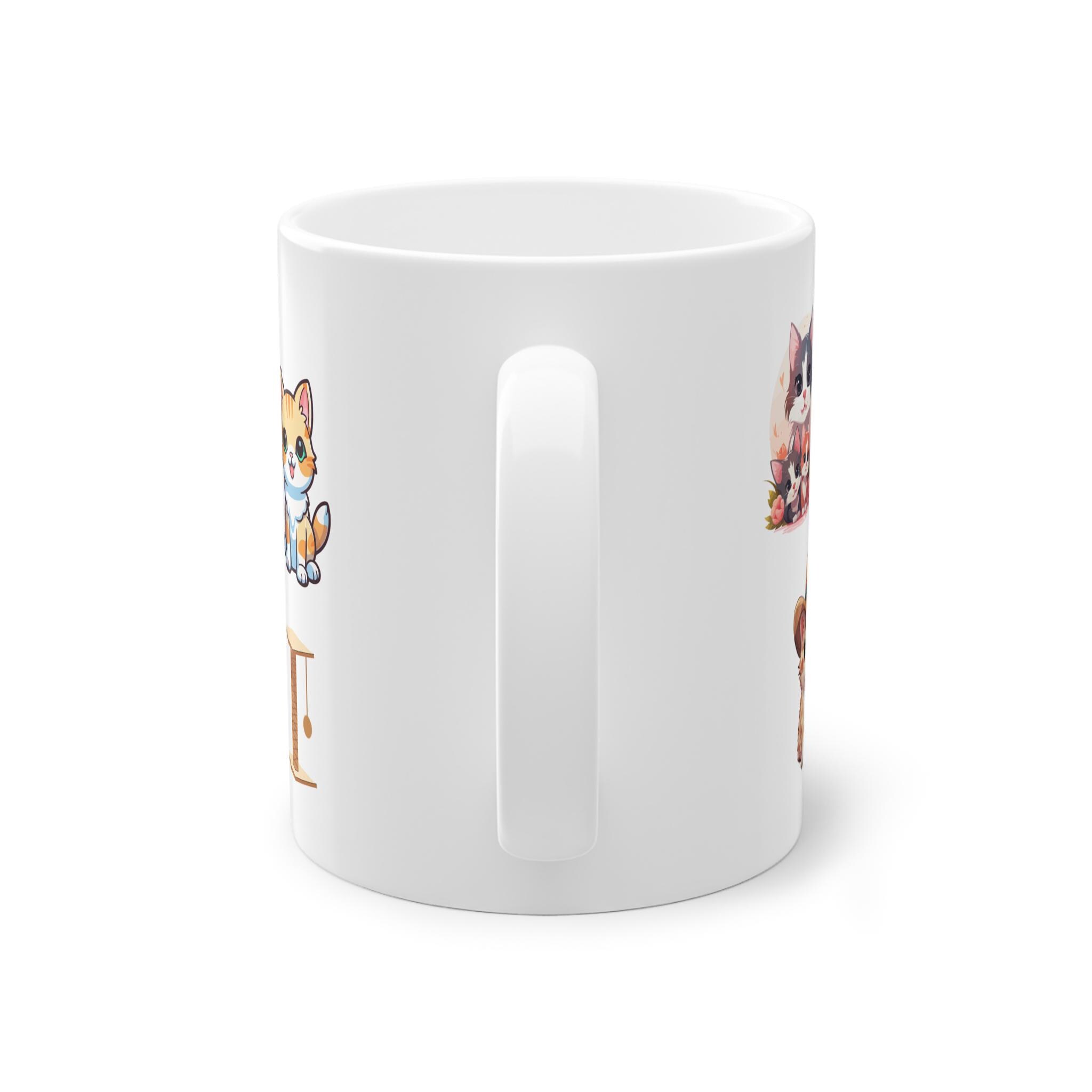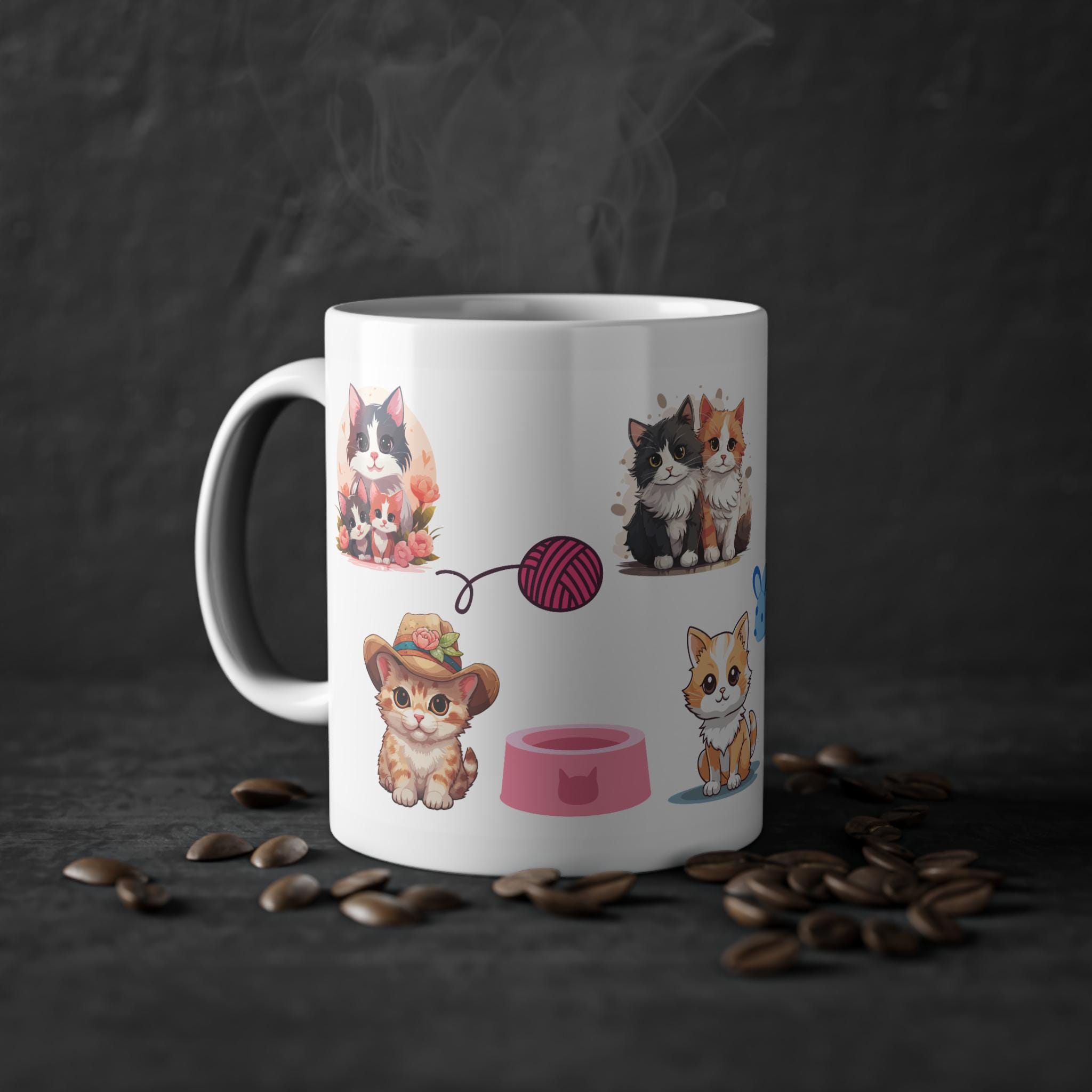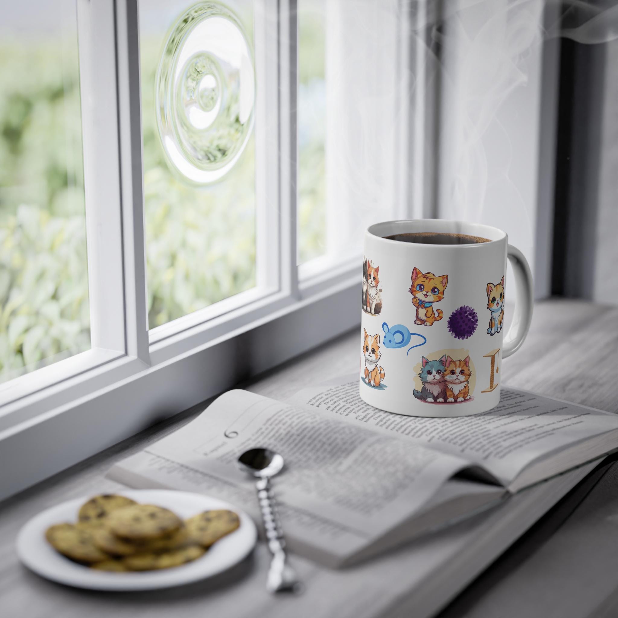 This cute children's mug with a cat motif is perfect for little animal lovers and cat lovers of all ages. This ceramic mug with a handle features sweet cat illustrations, as shown in the picture, that not only light up children's eyes but are also durable and practical for everyday use.