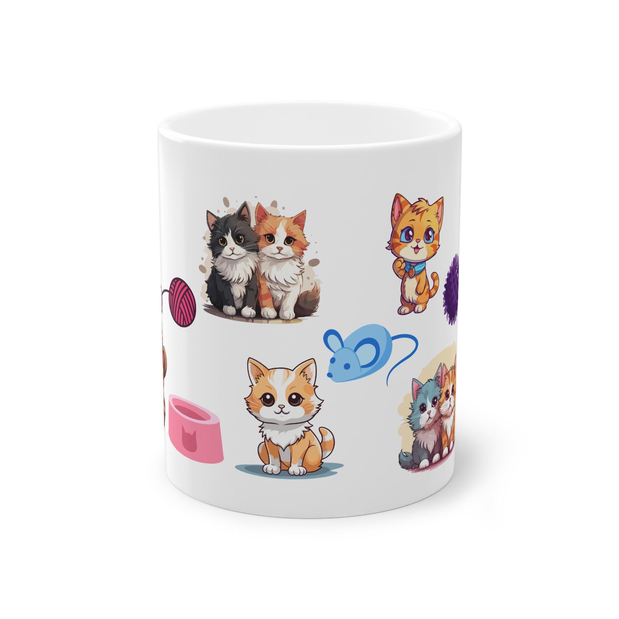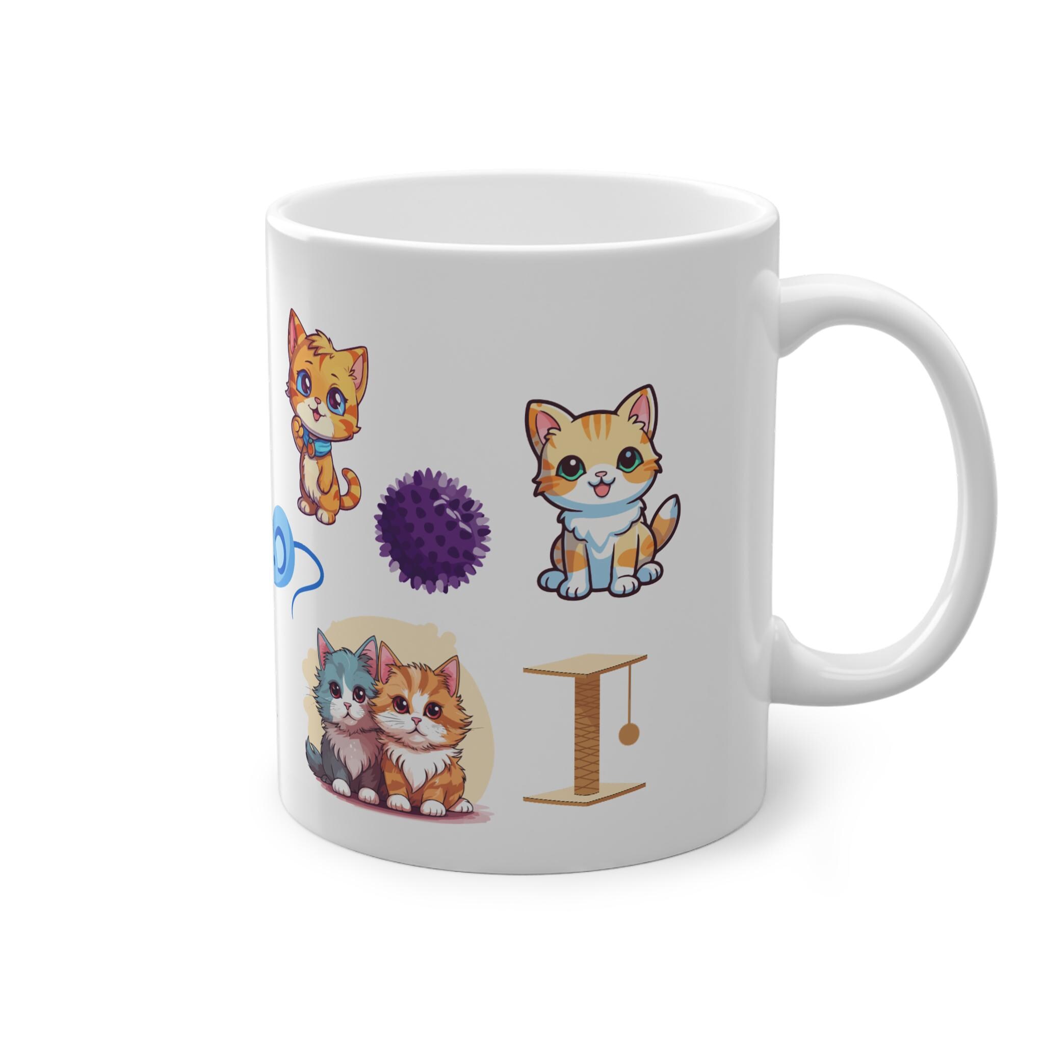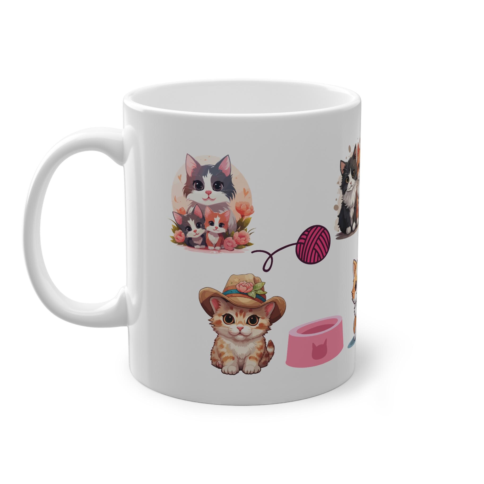 This cute children's mug with a cat motif is perfect for little animal lovers and cat lovers of all ages. This ceramic mug with a handle features sweet cat illustrations, as shown in the picture, that not only light up children's eyes but are also durable and practical for everyday use.