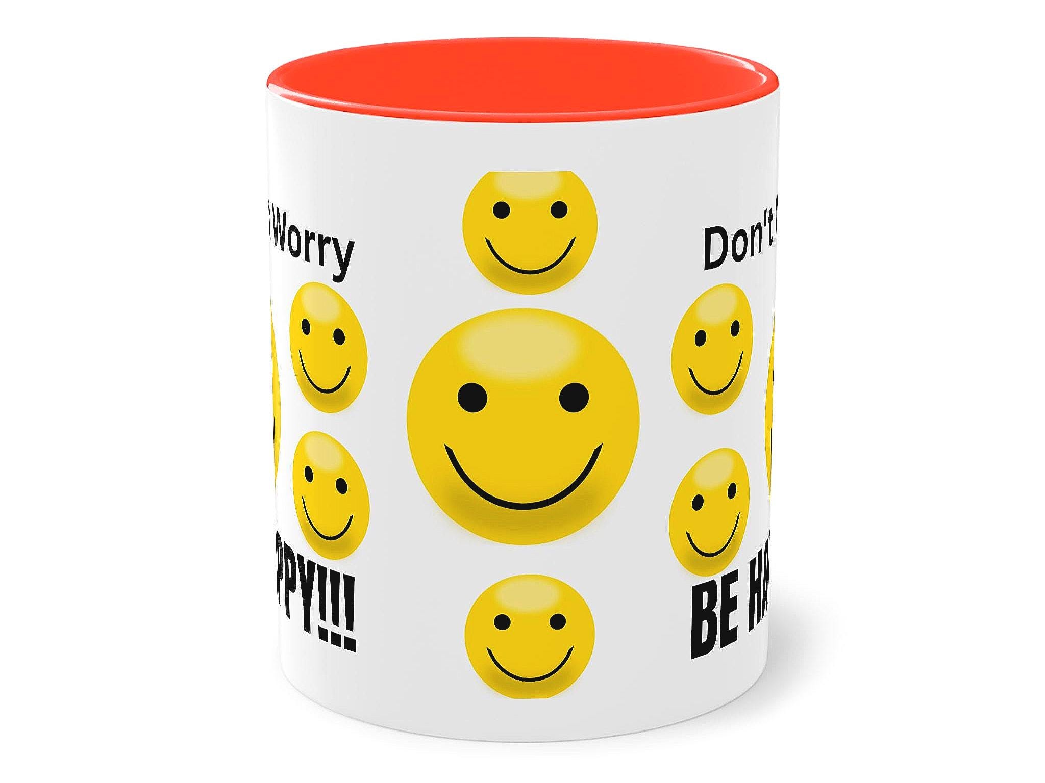 Two-tone coffee mug "Don't Worry, Be Happy!" – saying mug for colleagues, friends, office, motivational gift idea