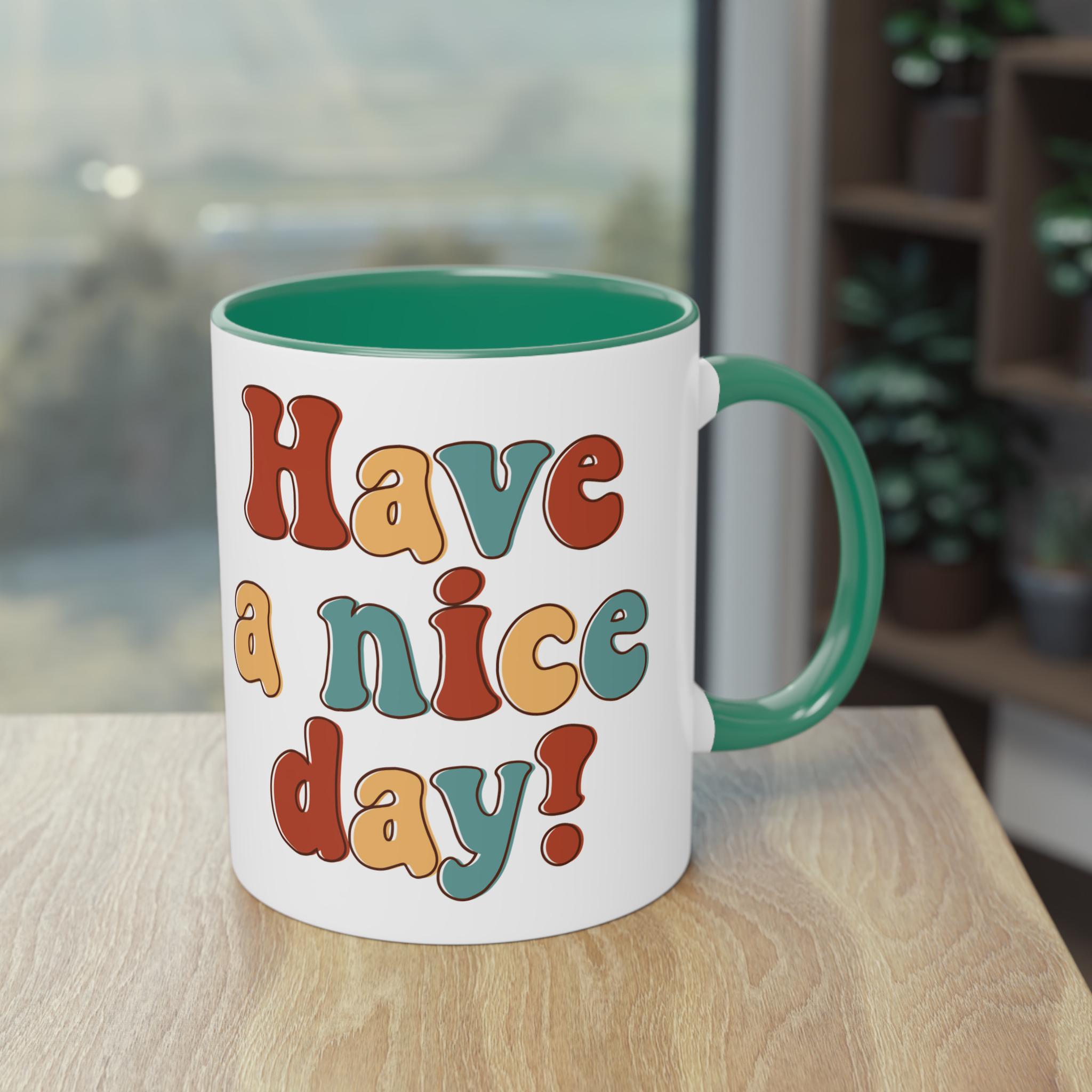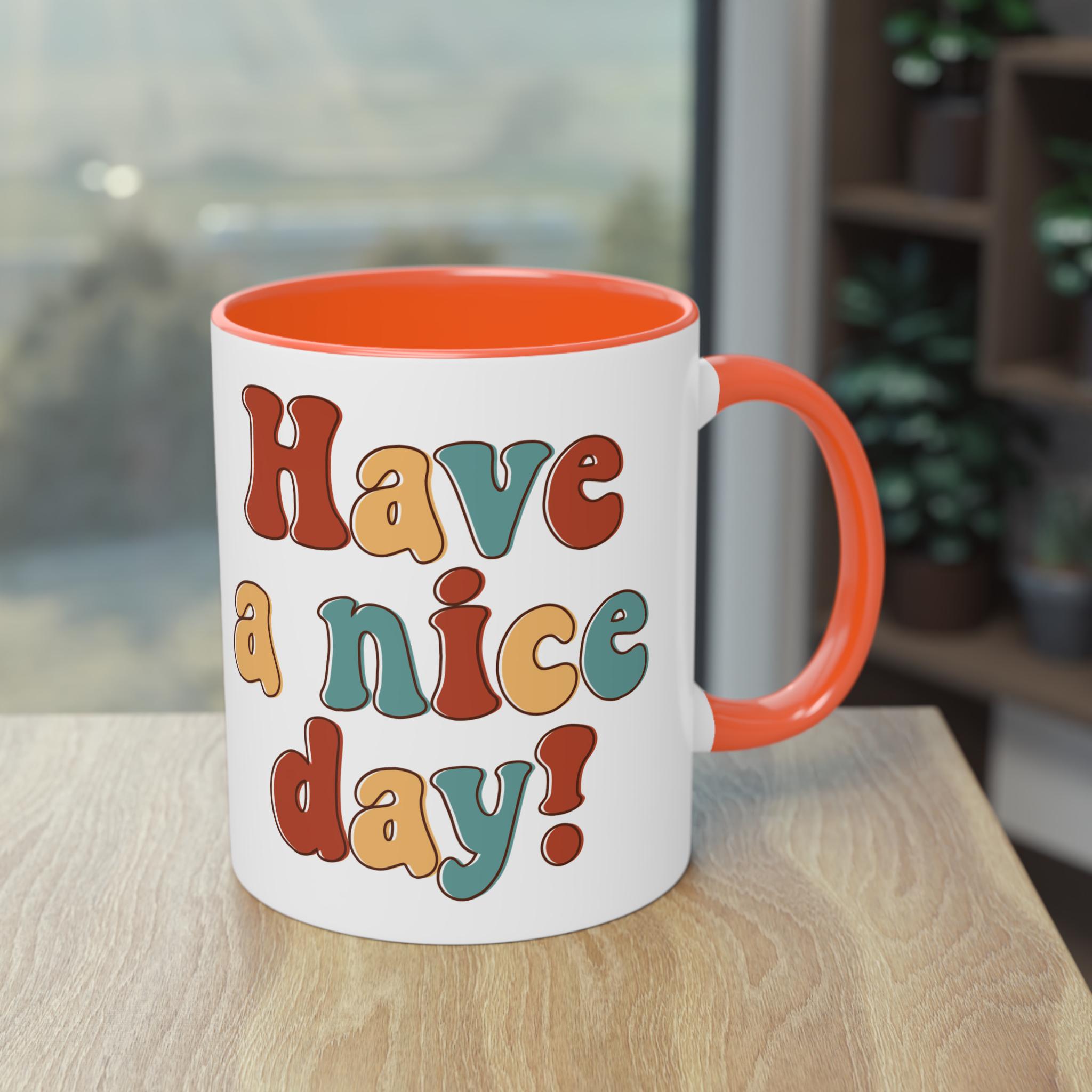 Two-tone coffee mug with funny saying Have a Nice Day!