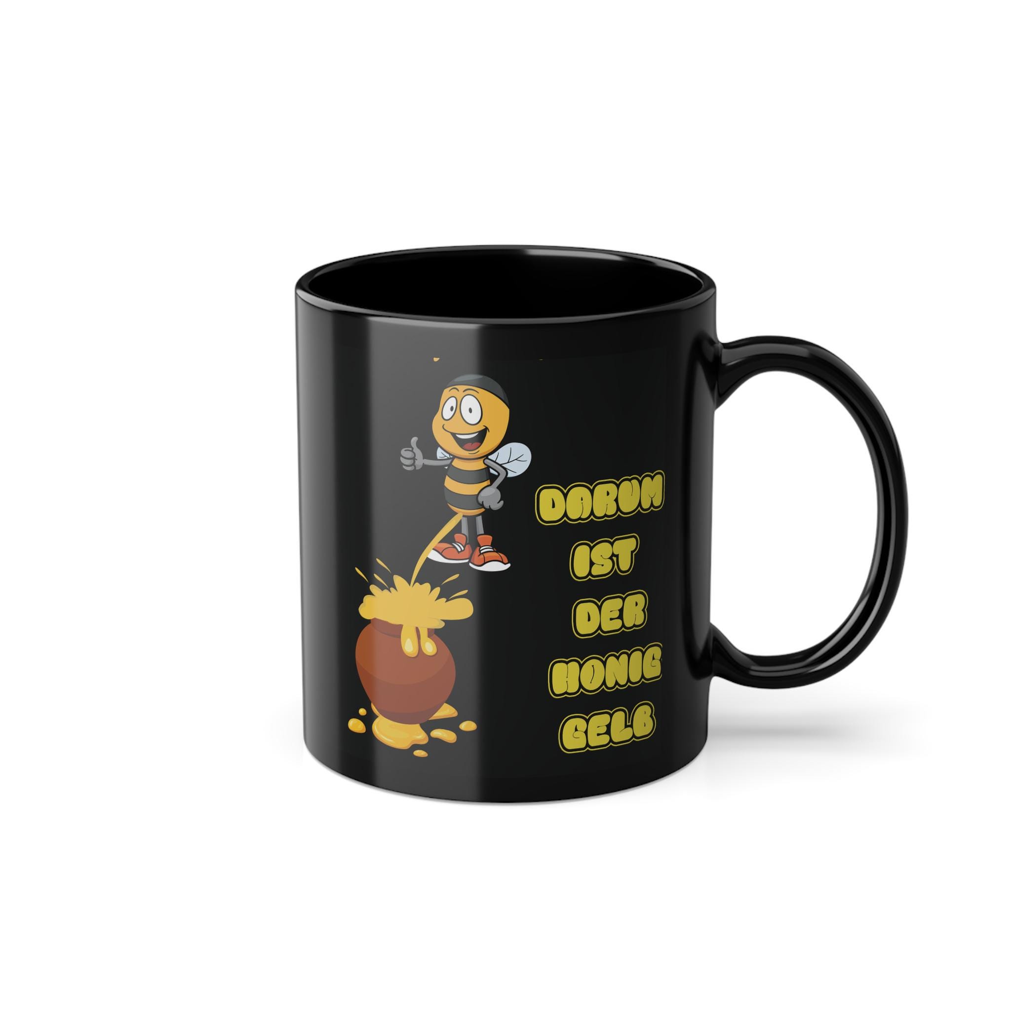 Black mug with funny bee honey motif - funny gift, office mug with saying
