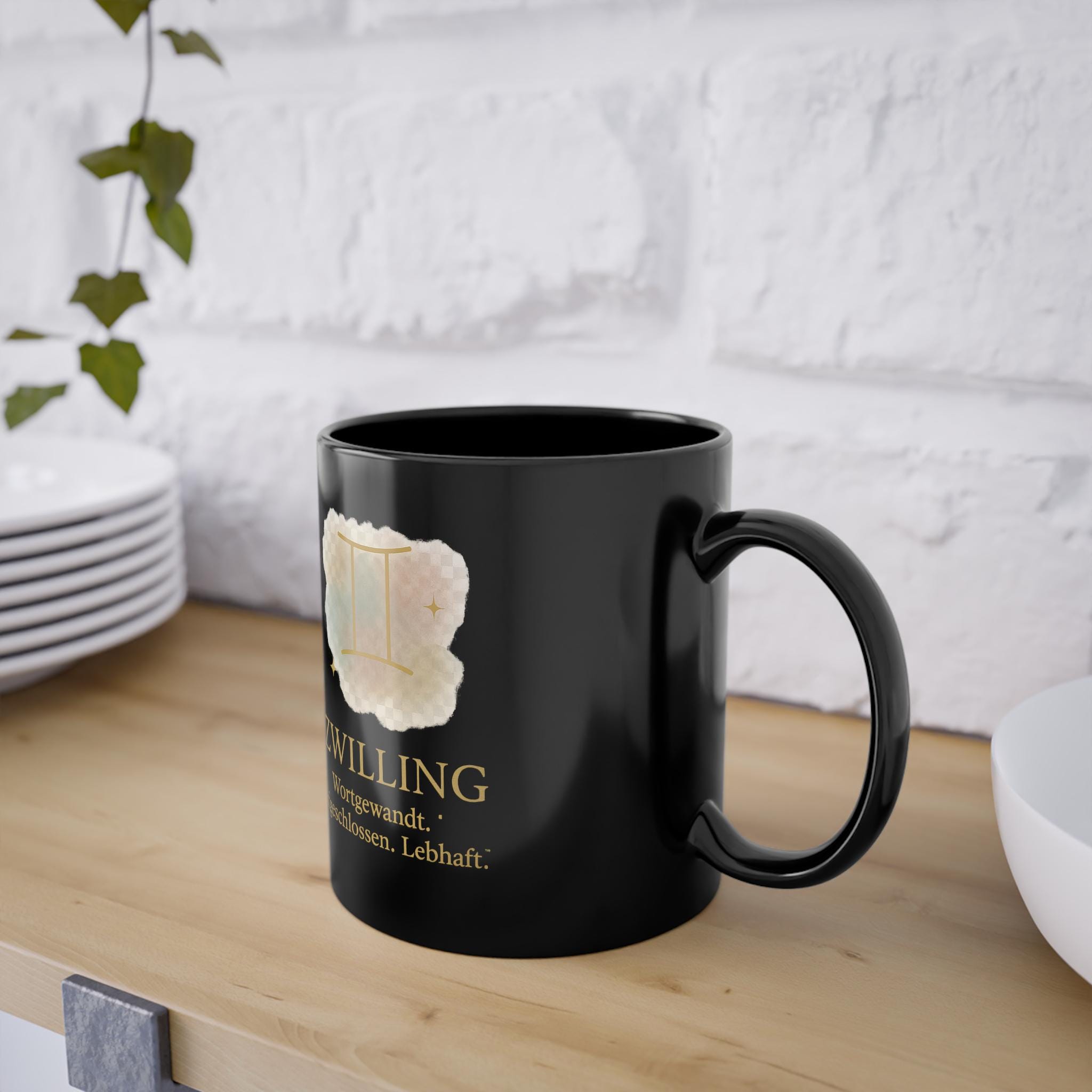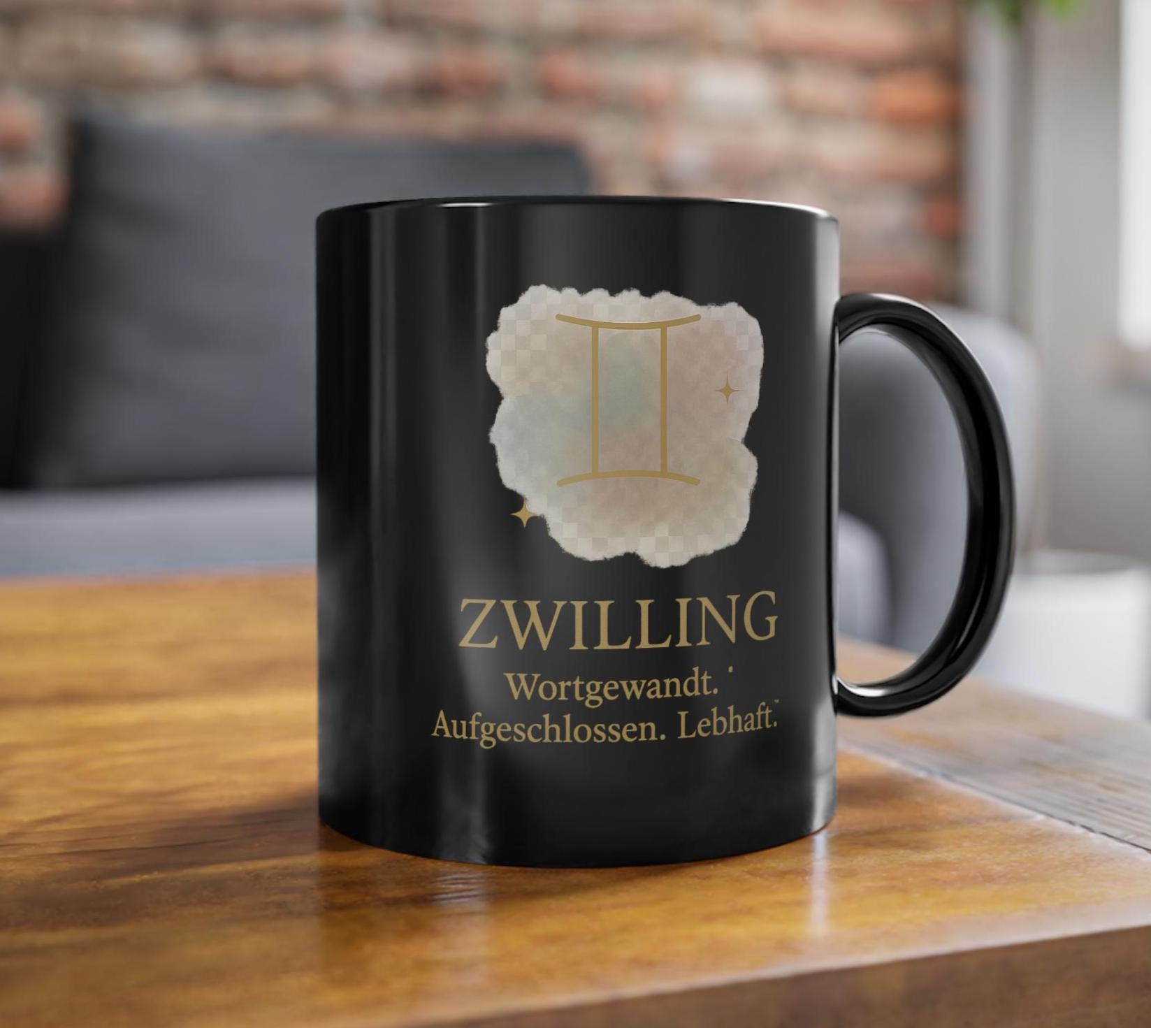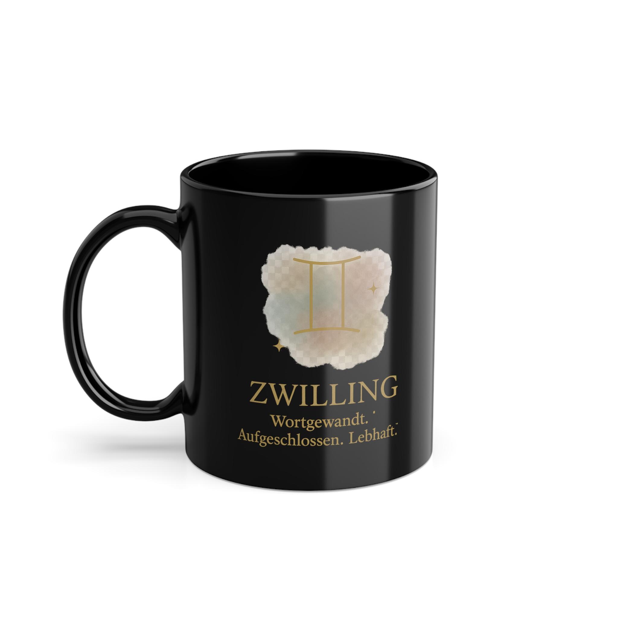 This celestial black ceramic mug features the Gemini zodiac sign and gold-colored "Characters" lettering – the perfect gift for astrologers. It adds a mystical touch to your morning coffee routine and makes a thoughtful gift for astrology enthusiasts and zodiac followers. Suitable for birthdays, holidays, and astrological occasions.