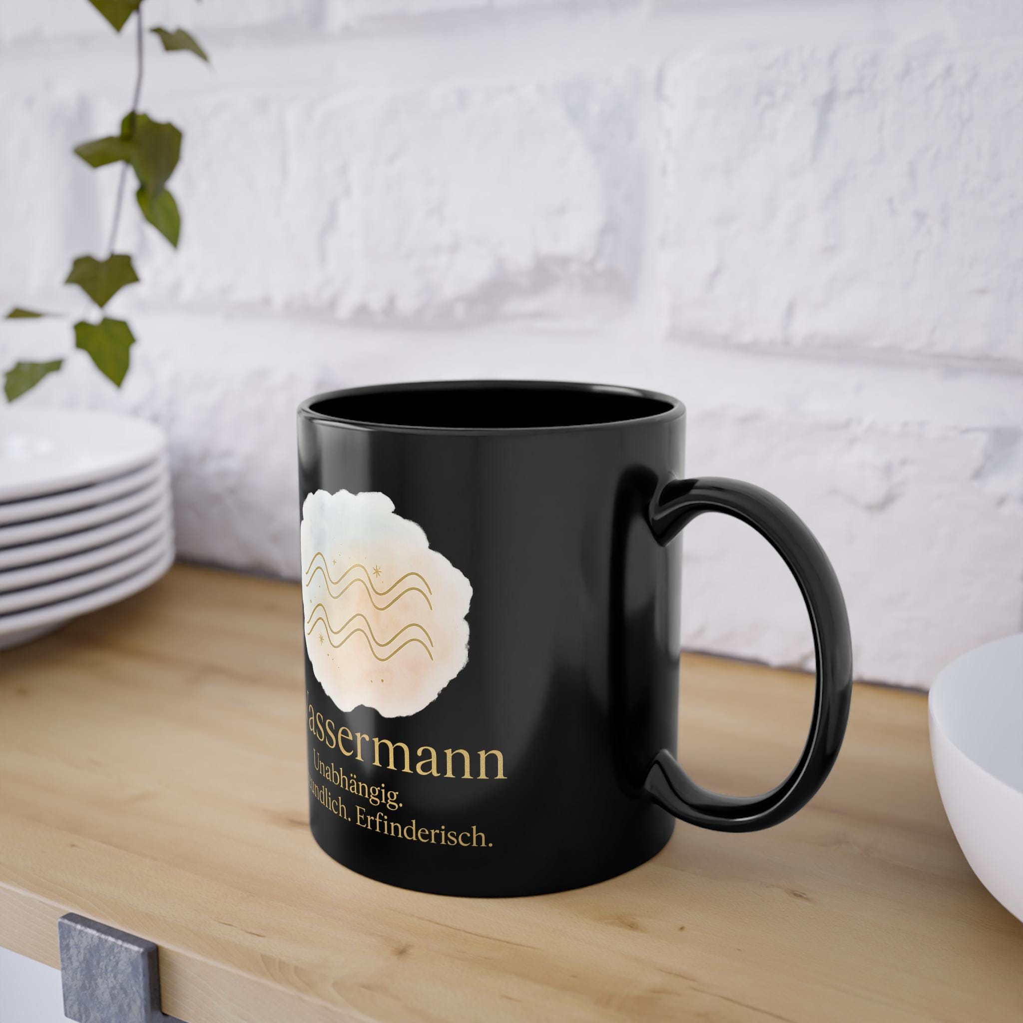 This coffee mug featuring the Aquarius zodiac sign with gold lettering is the perfect astrology-themed gift. The sturdy black ceramic material and glossy finish give it a sleek and modern look. Ideal for astrology fans and anyone who enjoys personalized gifts. Perfect for birthdays, holidays, and special occasions.