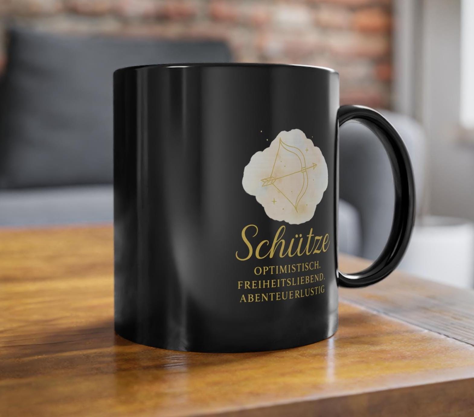 This black coffee mug with gold lettering featuring the zodiac sign Sagittarius is the perfect gift for astrology fans. The durable ceramic material with a glossy finish is microwave-safe and easy to handwash, ensuring the design retains its vibrant color. Ideal for anyone interested in astrology looking for a unique gift for a birthday or other holiday.