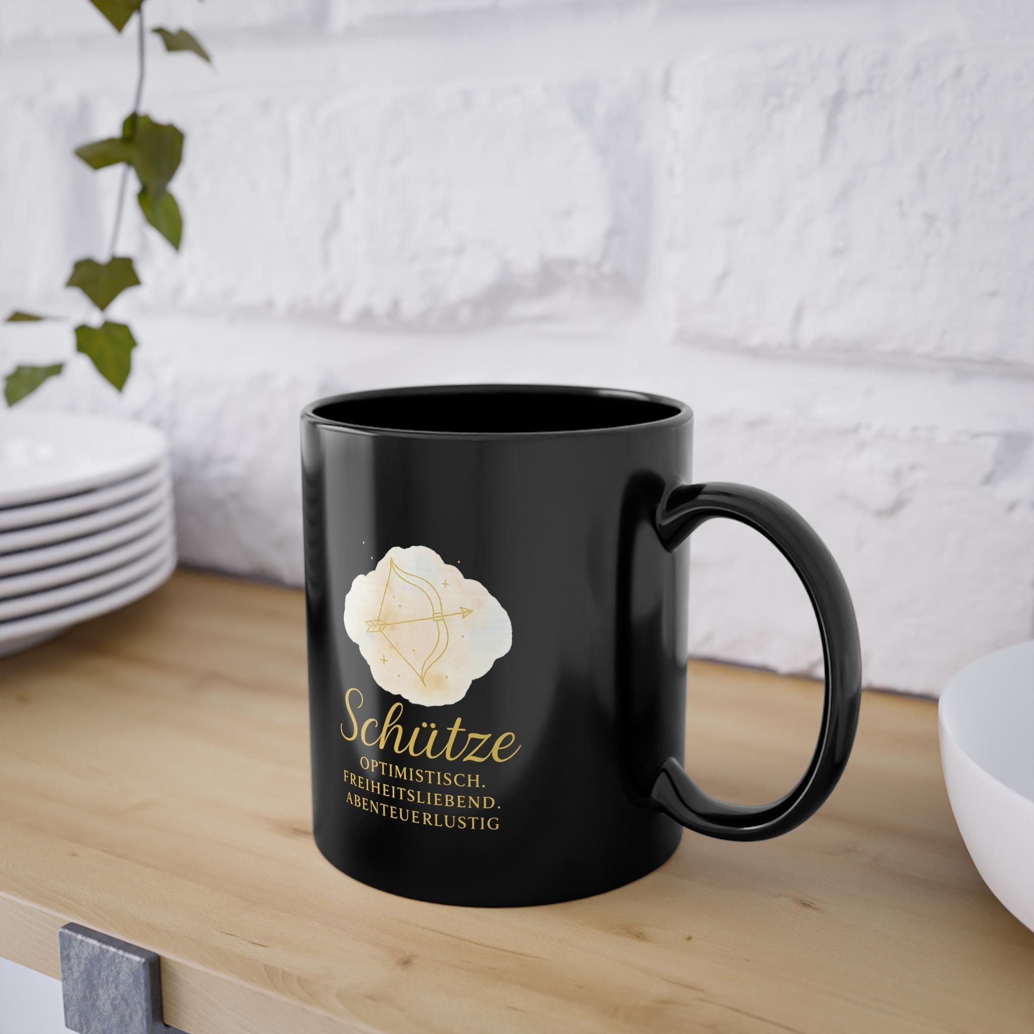 Coffee mug black constellation Sagittarius, golden lettering, boho style for astrology fans, astrology gift, horoscope gift