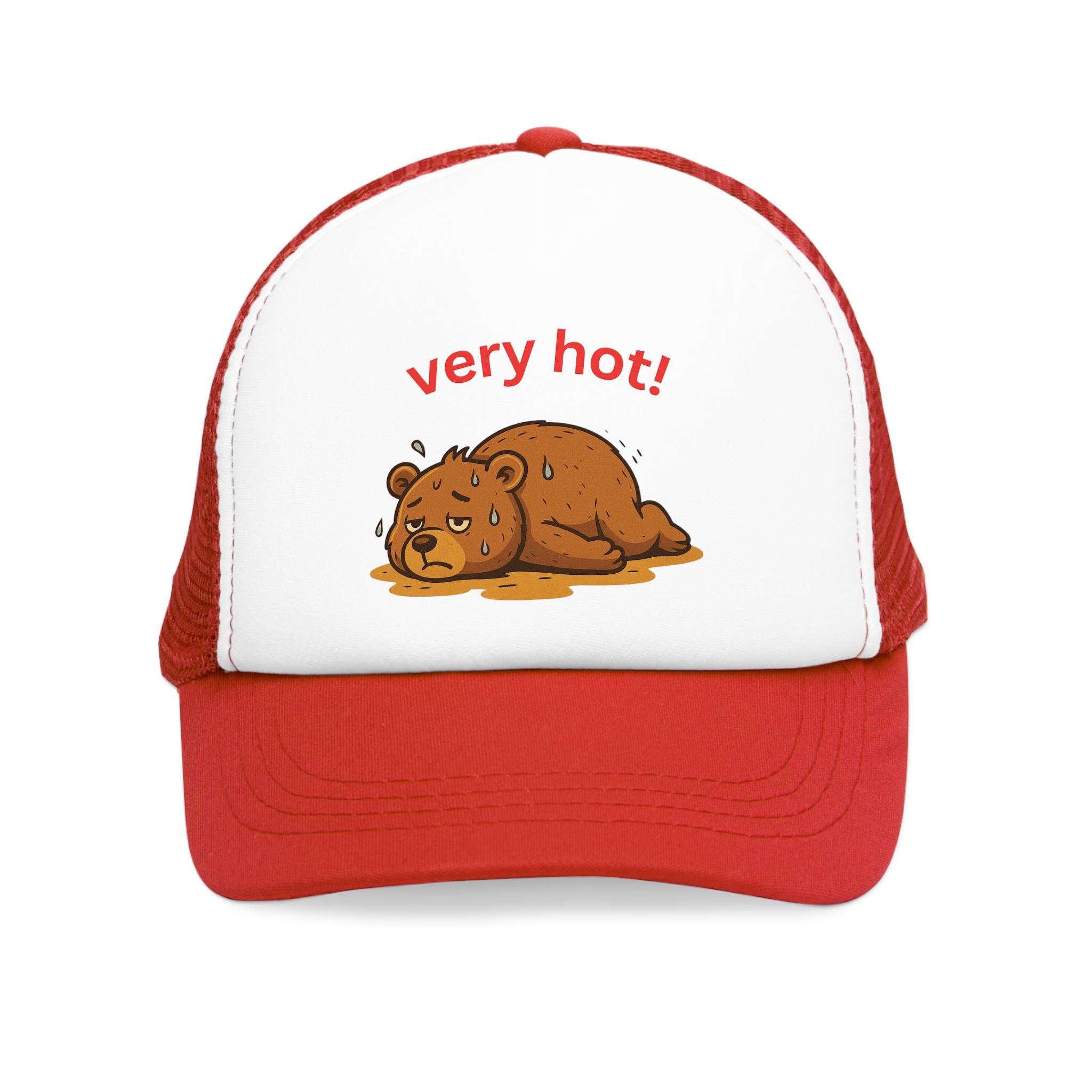 Discover our vibrant mesh cap with a fun print of a sweaty bear and red text – the perfect summer accessory for all outdoor enthusiasts! This unisex, one-size-fits-all baseball cap not only offers a unique, quirky look but also reliably protects you from the sun and UV rays. Ideal for beach days, picnics, festivals, or relaxed strolls – this cap is a must-have for anyone who likes to stand out and have fun.
