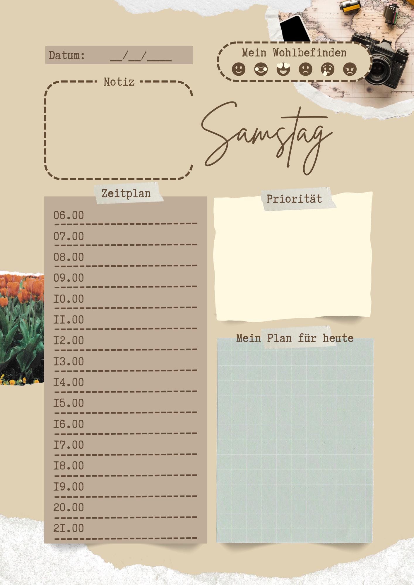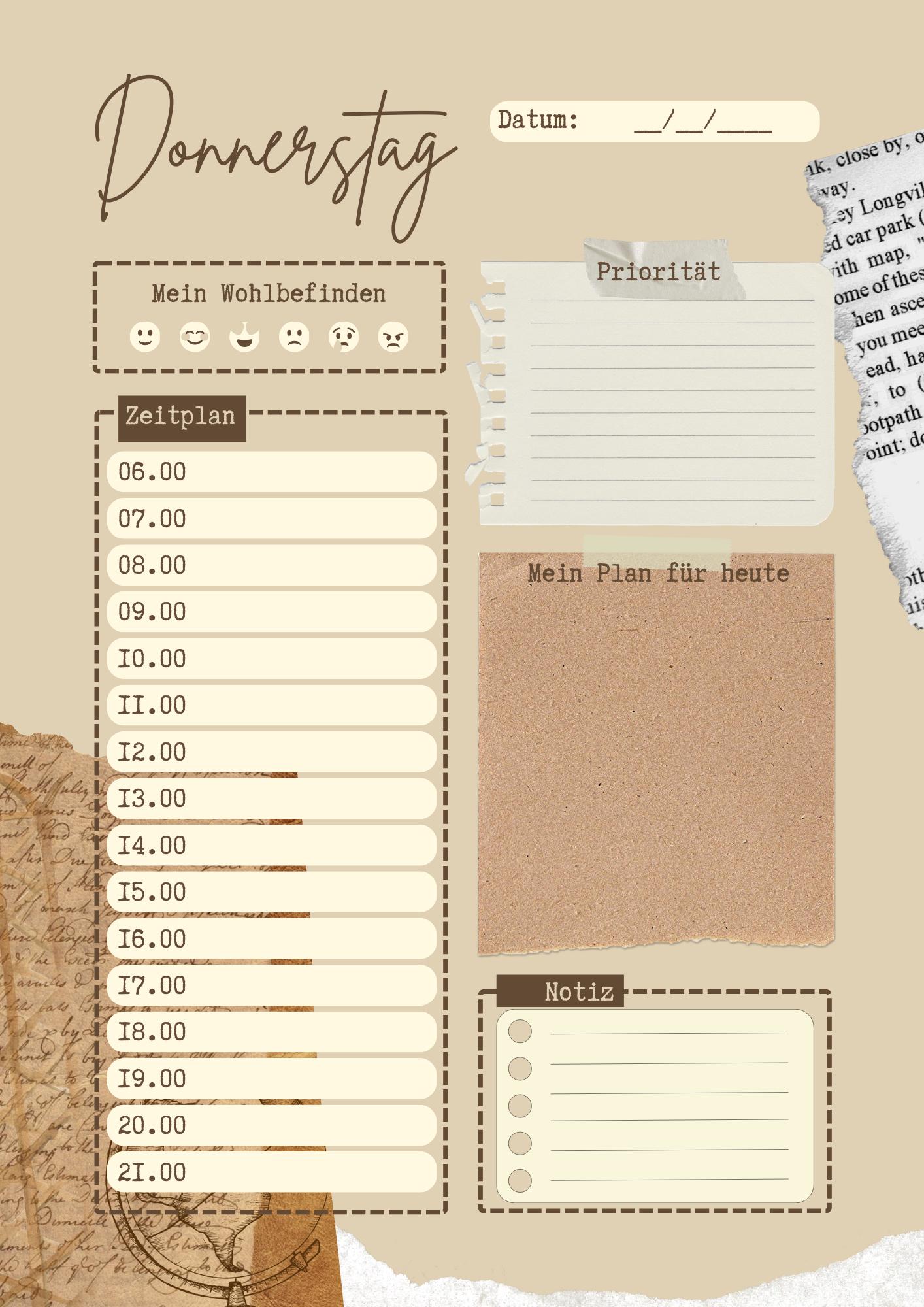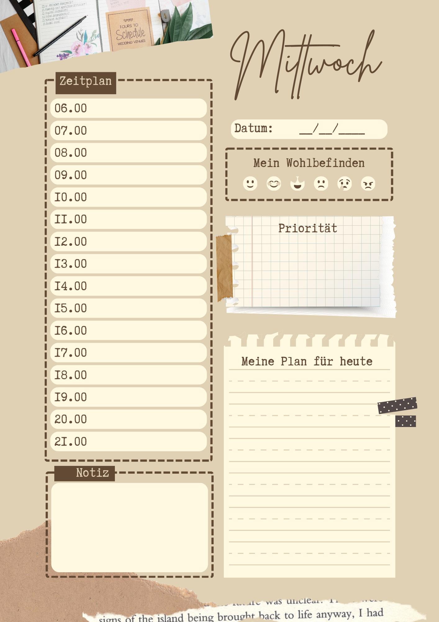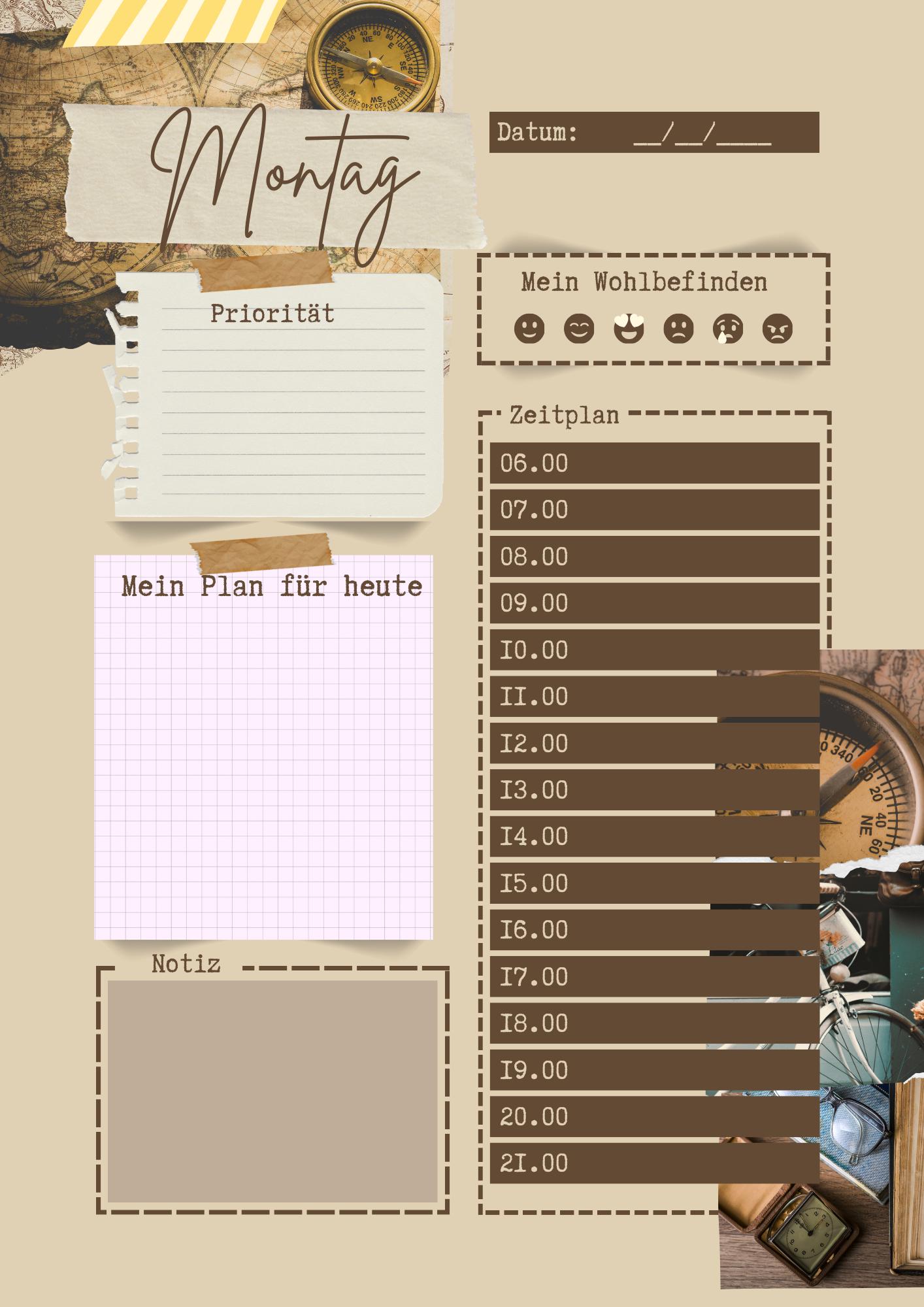 1 digital planner template (PNG) as a zip file (contains weekdays from Monday to Sunday)