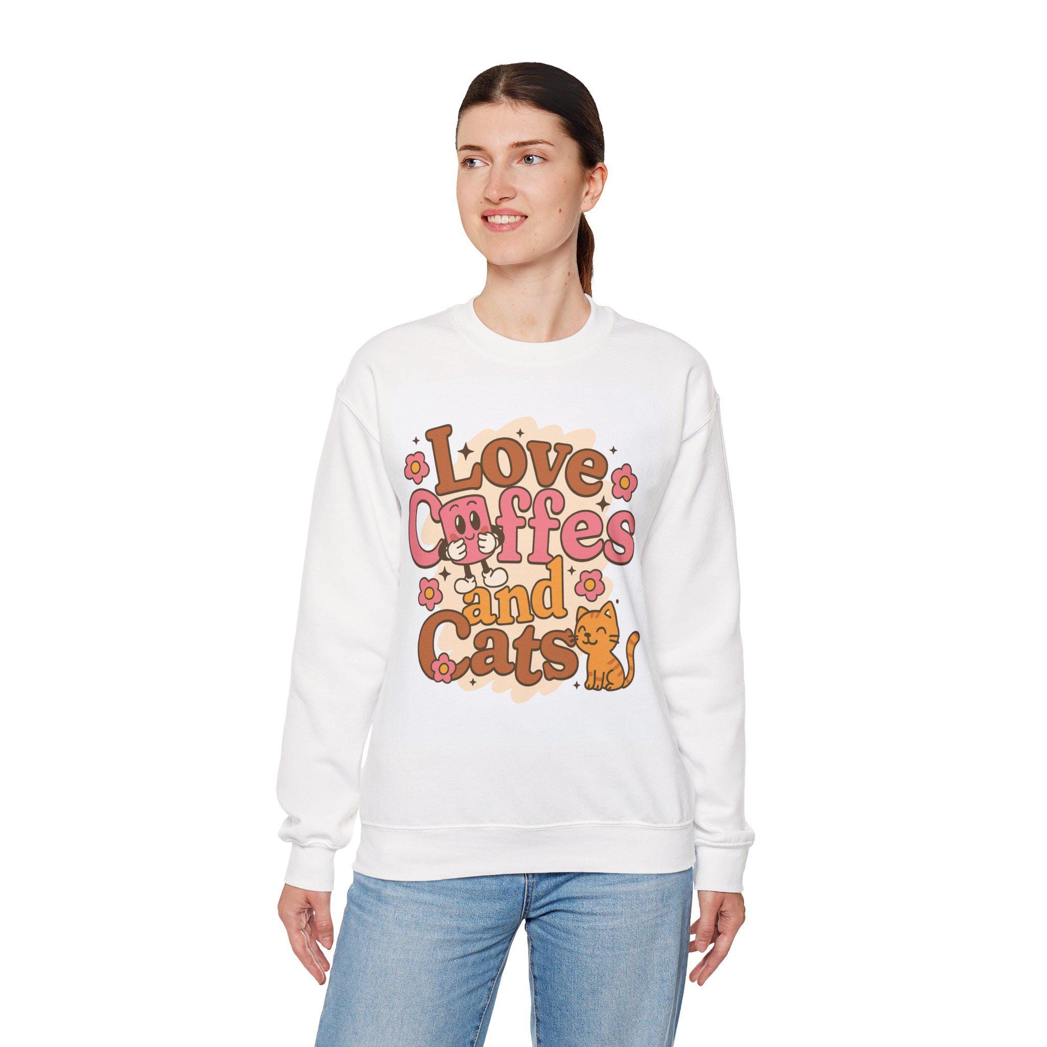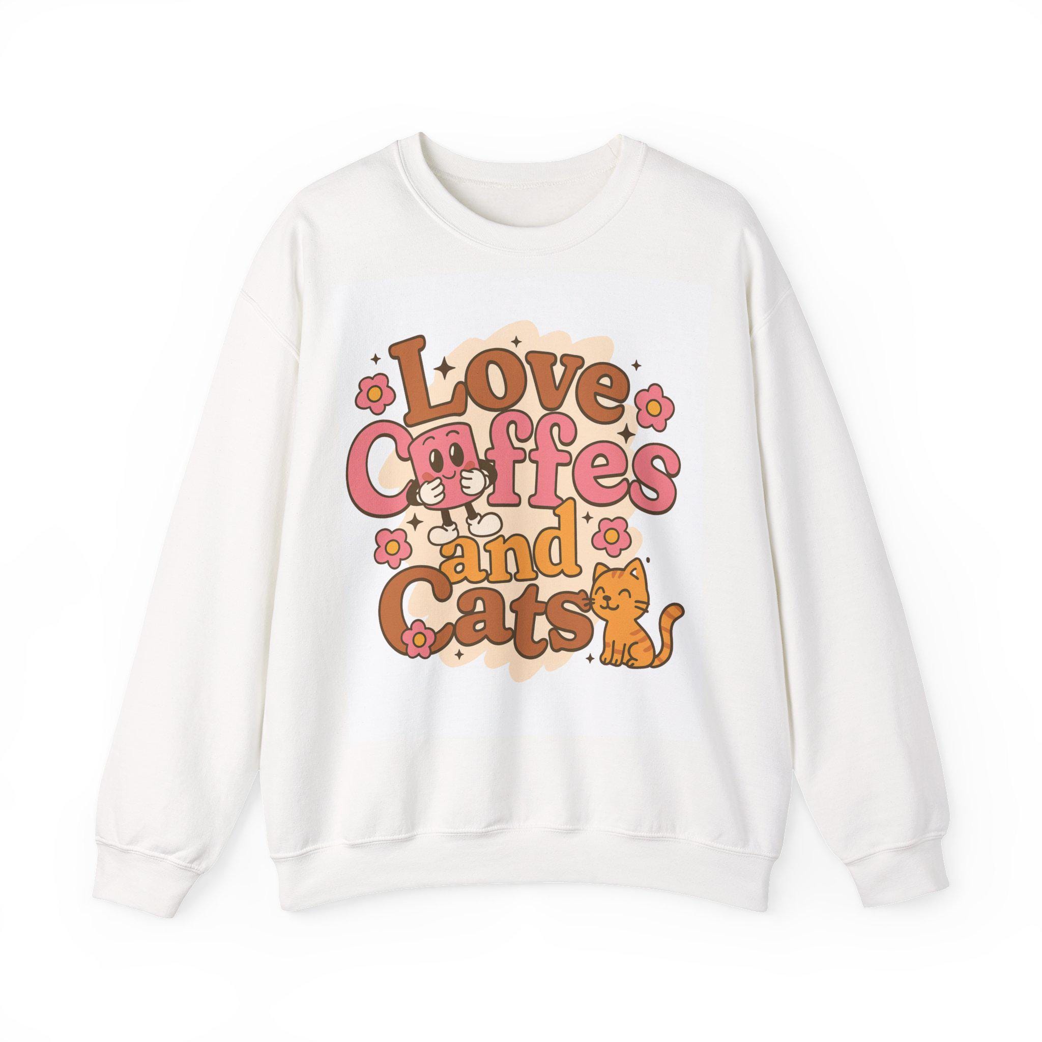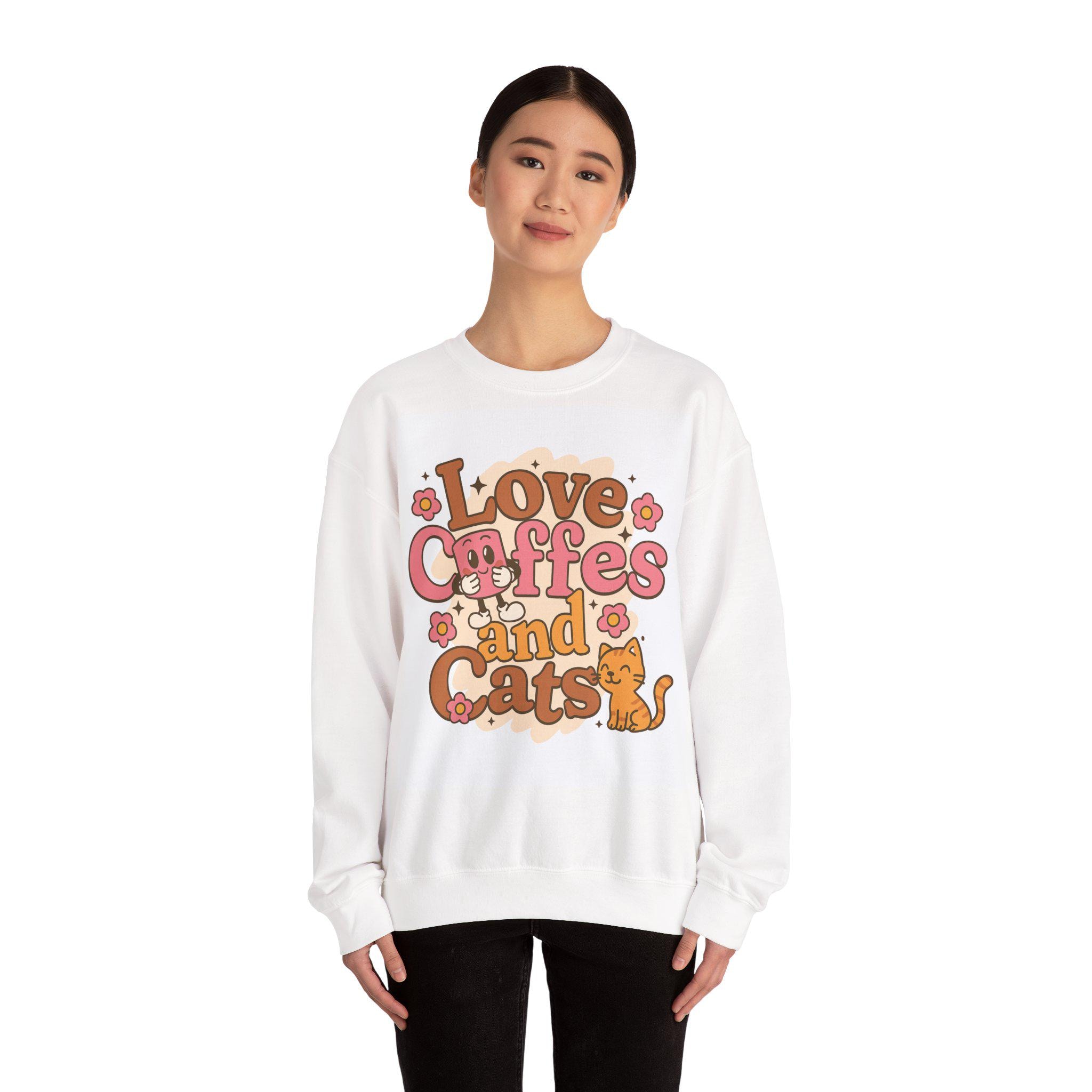 Get cozy in this unisex crew-neck sweatshirt made from a heavyweight cotton blend featuring a white coffee and cat cartoon design. Perfect for coffee and cat lovers, this sweatshirt makes a great gift for any occasion.