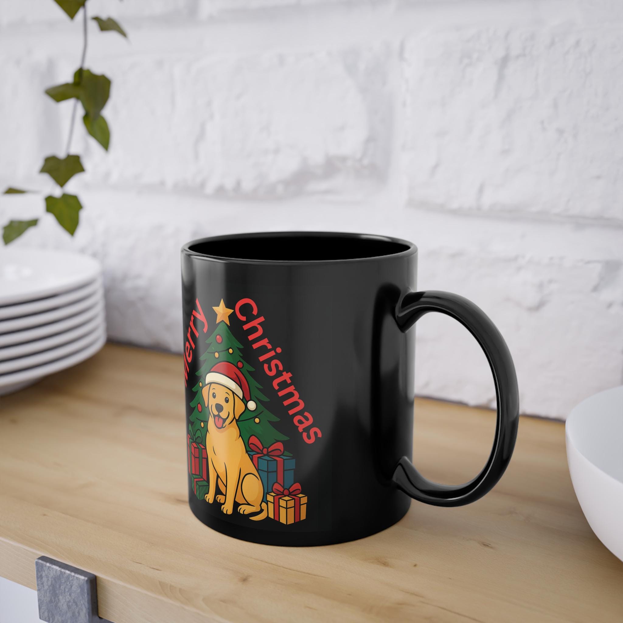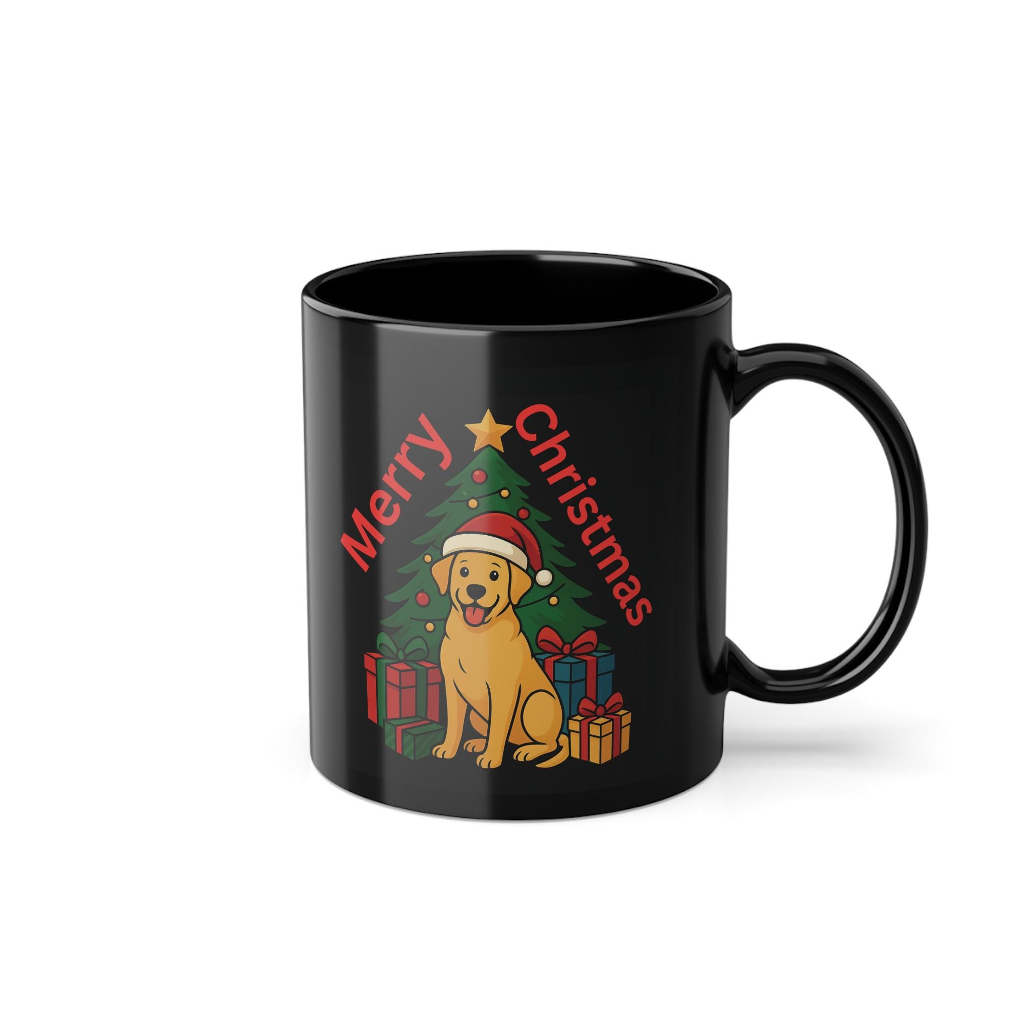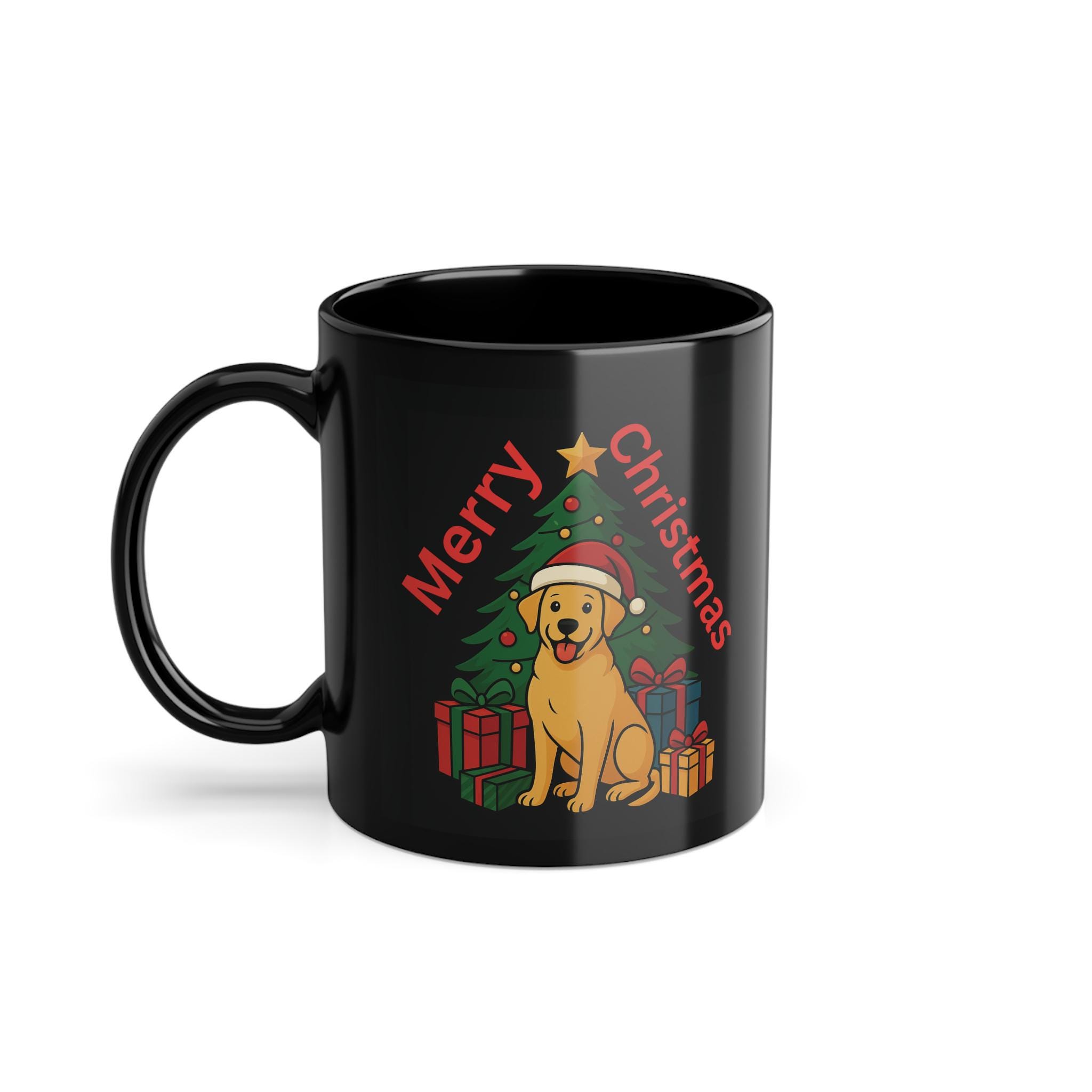 Merry Christmas! This Christmas mug in shiny black with a cute Christmas dog will delight dog fans of all ages.