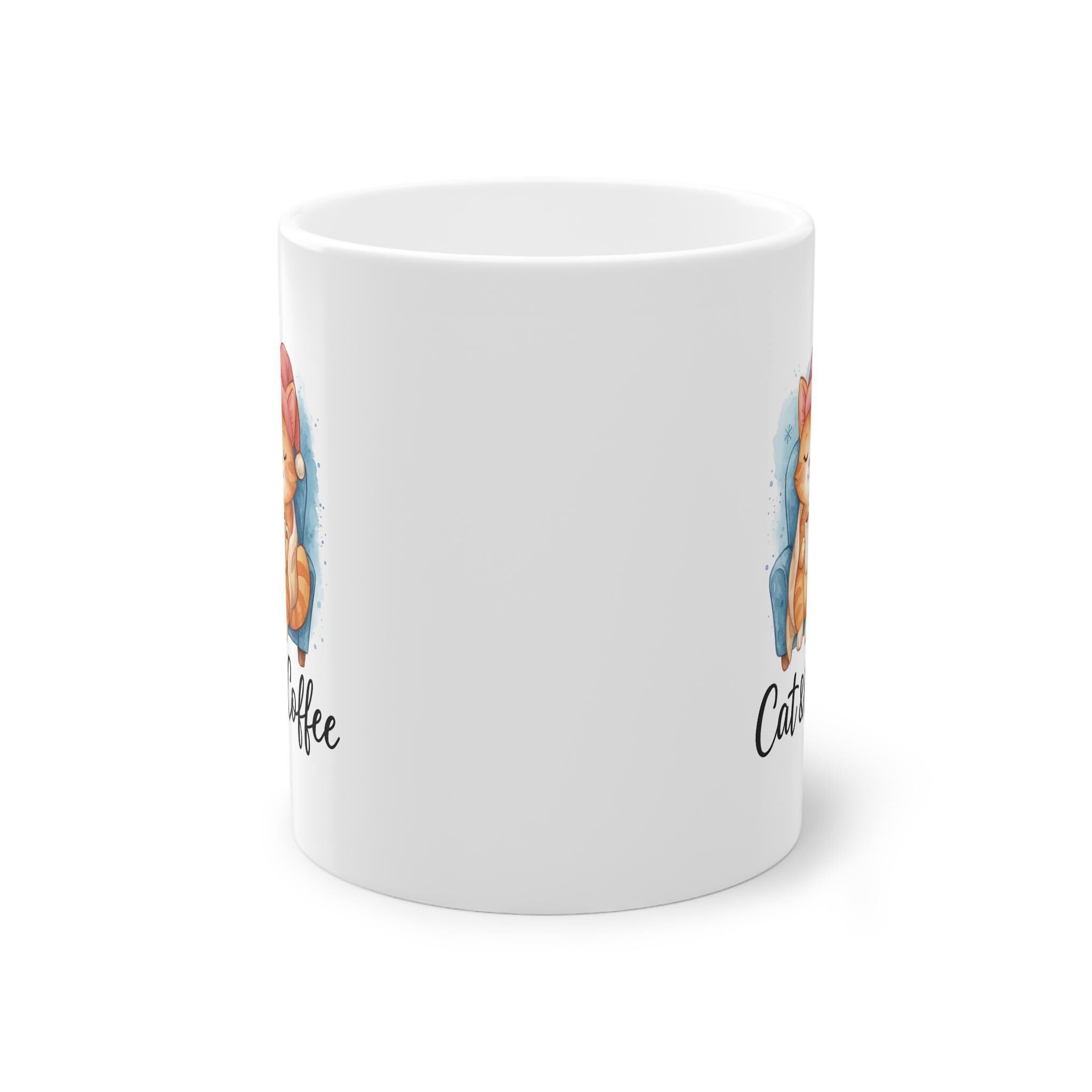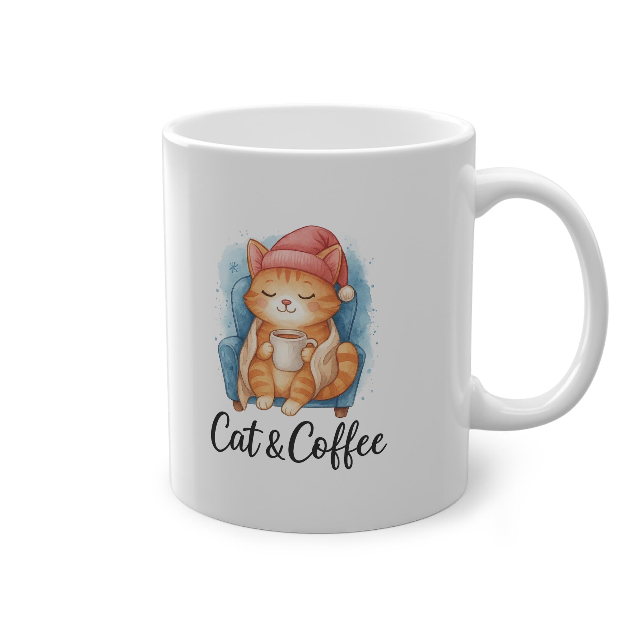 White coffee mug with cat motif Cat & Coffee Animal lovers Coffee drinkers