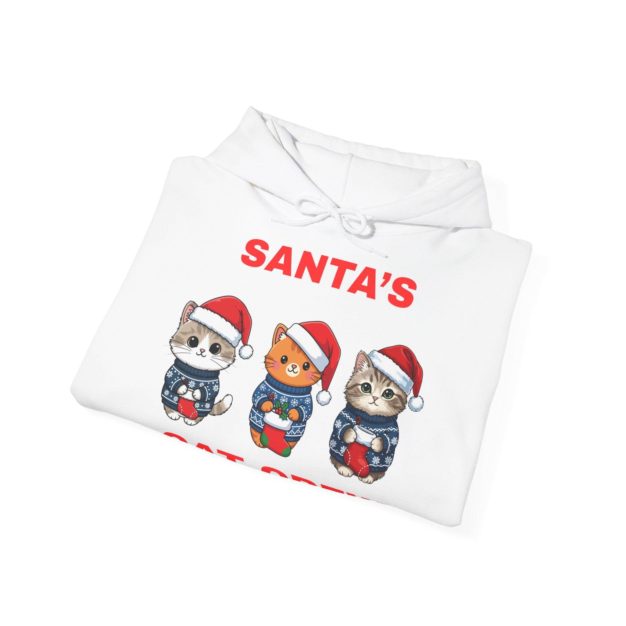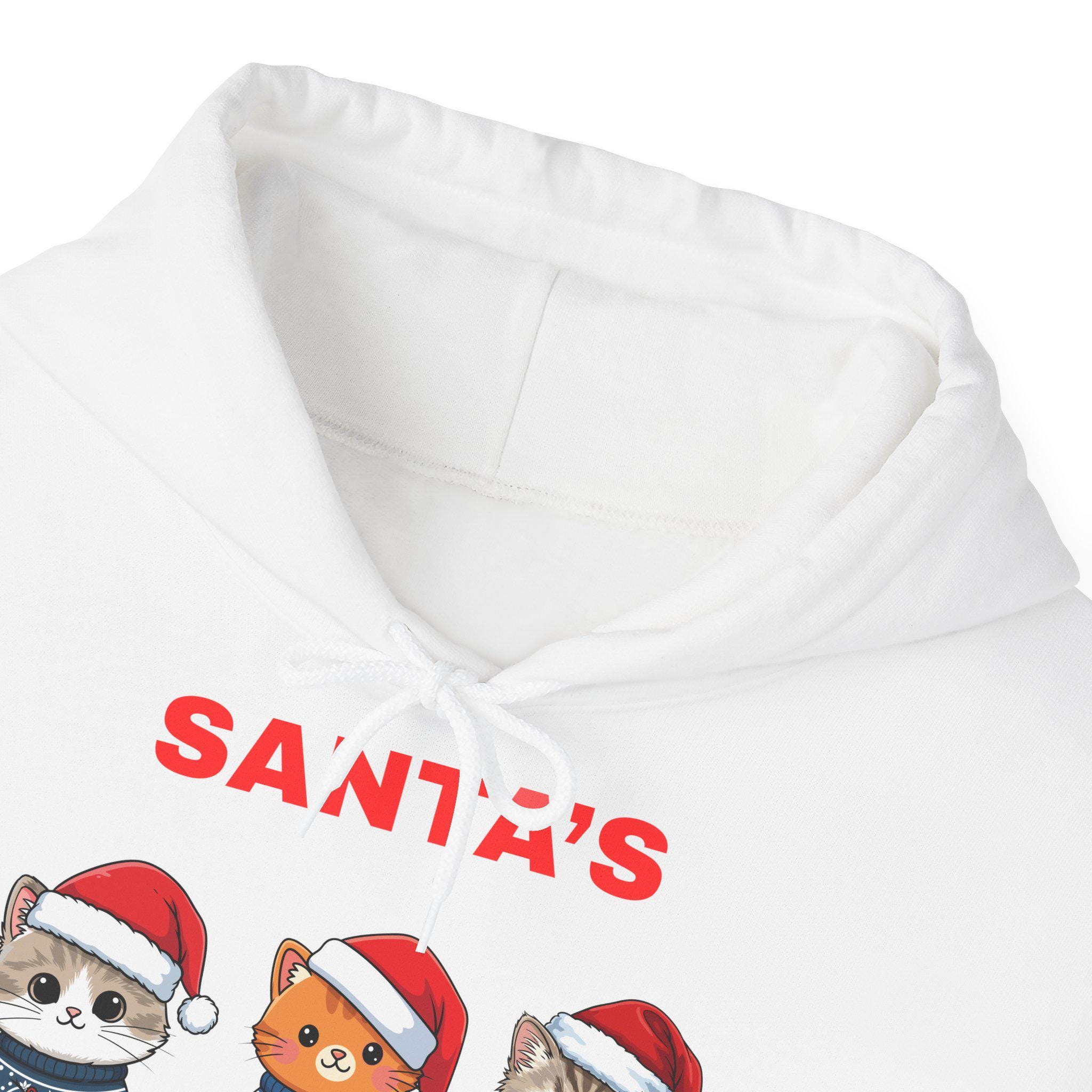 White hoodie with Christmas motif featuring cats for lovers