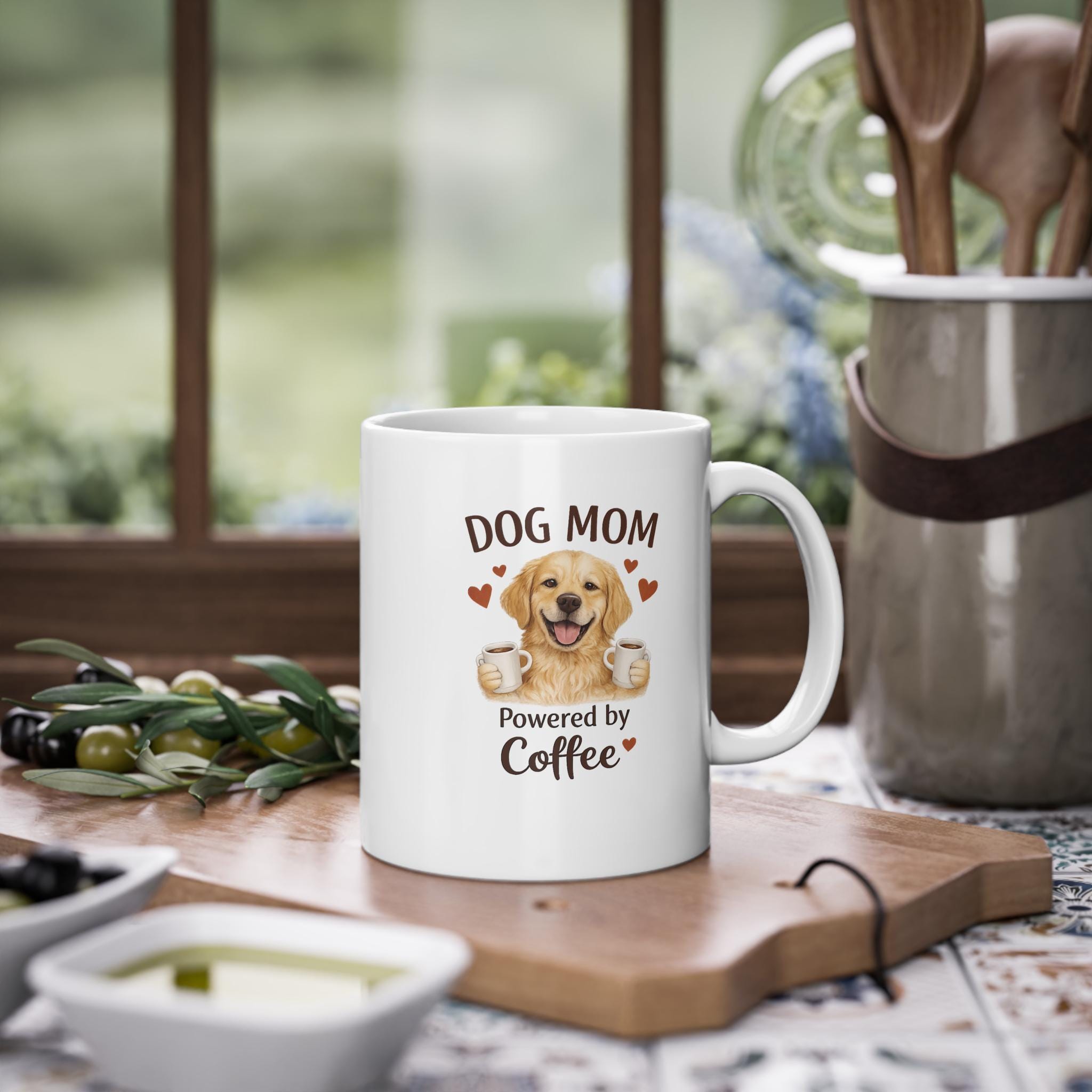 Morgens mit schlammigen Pfoten und wedelnden Schwänzen wird es mit dieser glänzend weißen Keramiktasse gleich viel schöner. Ein fröhliches Golden-Retriever-Lächeln und die warme Aufschrift „HUNDEMAMA – Angetrieben von Kaffee“, umgeben von kleinen Herzen, zieren die Tasse. Sie ist so praktisch, dass sie sich schnell in Ihre Lieblingstassensammlung einfügt und dank des C-förmigen Henkels gut in der Hand liegt, egal ob Sie gemütlich trinken oder schnell aus dem Haus eilen. Der farbenfrohe Rundumdruck sorgt dafür, dass das Motiv auch nach vielen Spülgängen noch strahlend aussieht. Und da die Keramik mikrowellen- und spülmaschinenfest ist, passt sie perfekt in den Alltag – ob Wochenendspaziergang, Homeoffice-Meeting oder Kuschelpause auf dem Sofa. Ein treuer Begleiter für alle, die ihren Tag mit der Pflege ihres Hundes beginnen und mit Kaffee und Zuneigung in Schwung kommen.