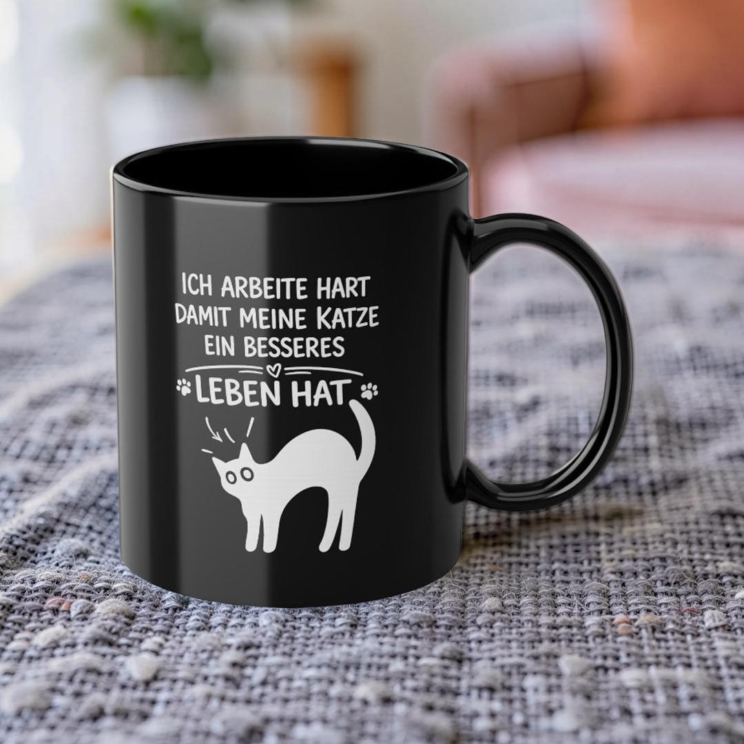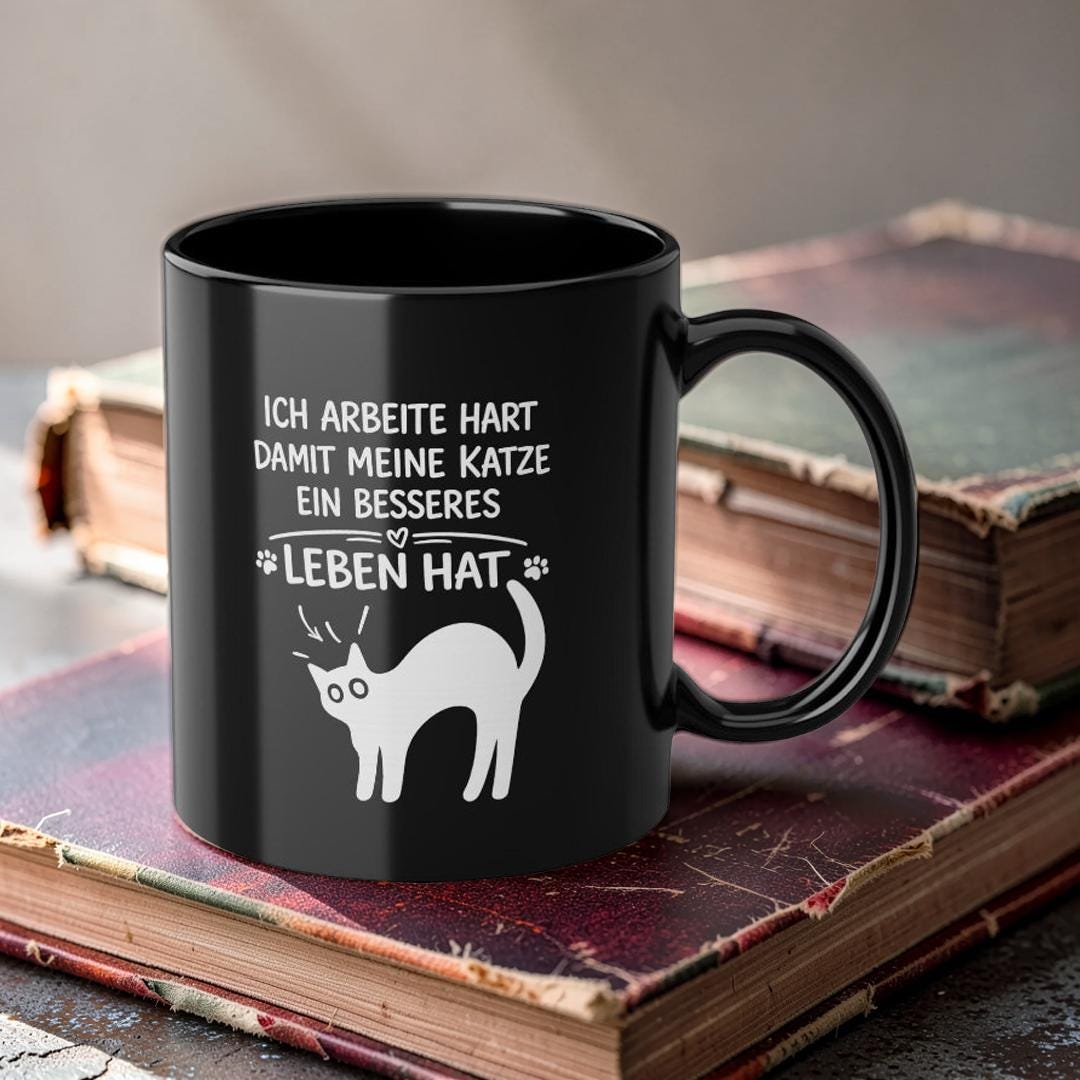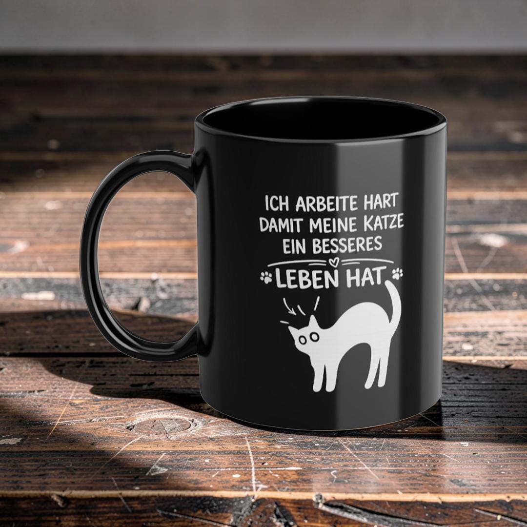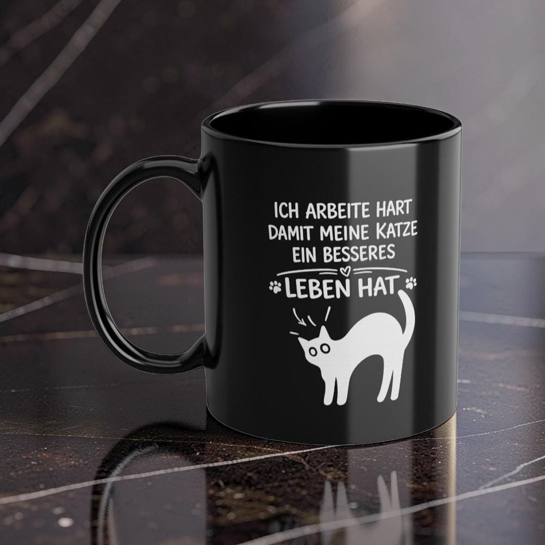 Dieser elegante schwarze Keramikbecher (325 ml) verleiht Ihrem Morgenritual eine ruhige, selbstbewusste Ausstrahlung. Die tiefglänzende Oberfläche bringt das weiße Motiv besonders klar zur Geltung, während das umlaufende Design dem Becher eine persönliche, durchdachte Note verleiht – wie eine kleine Erinnerung, die Sie durch den Tag begleitet.