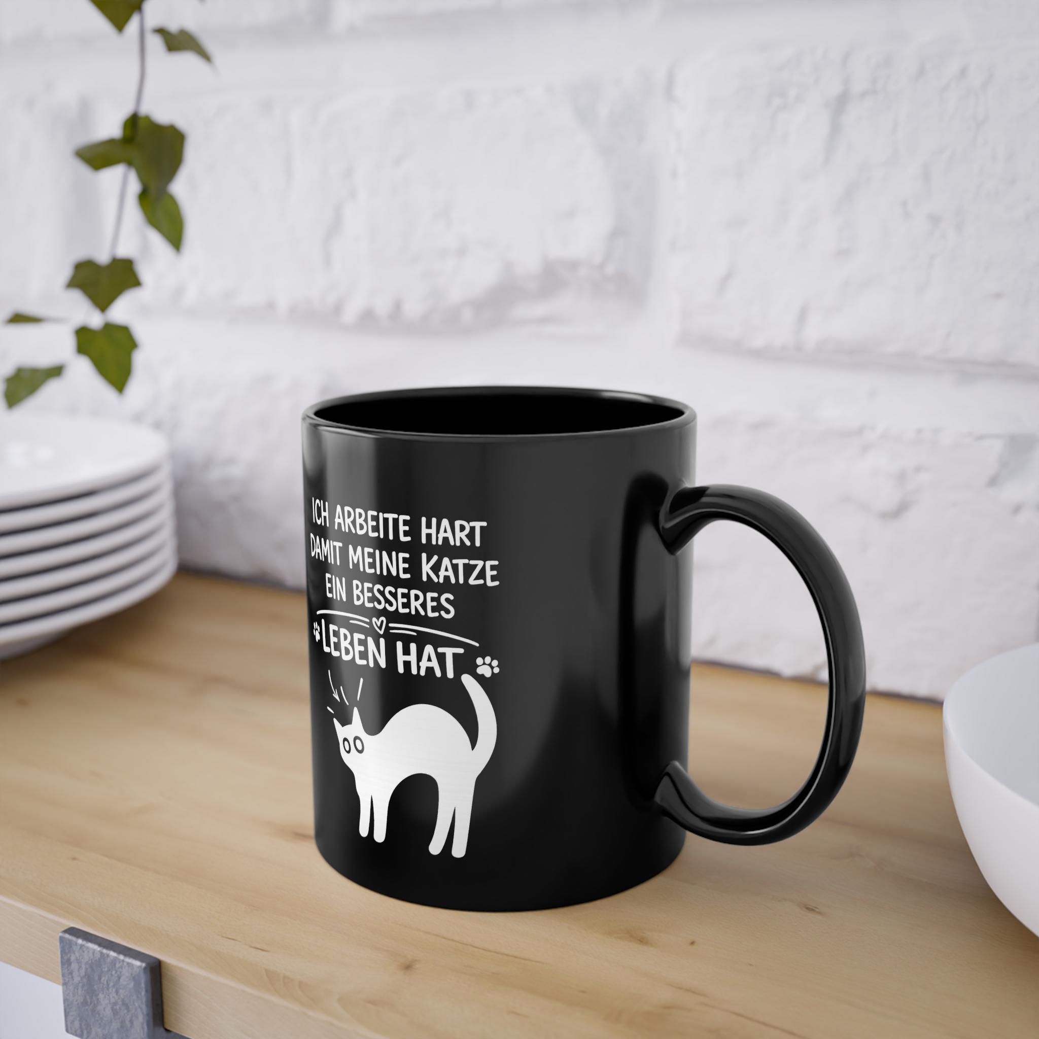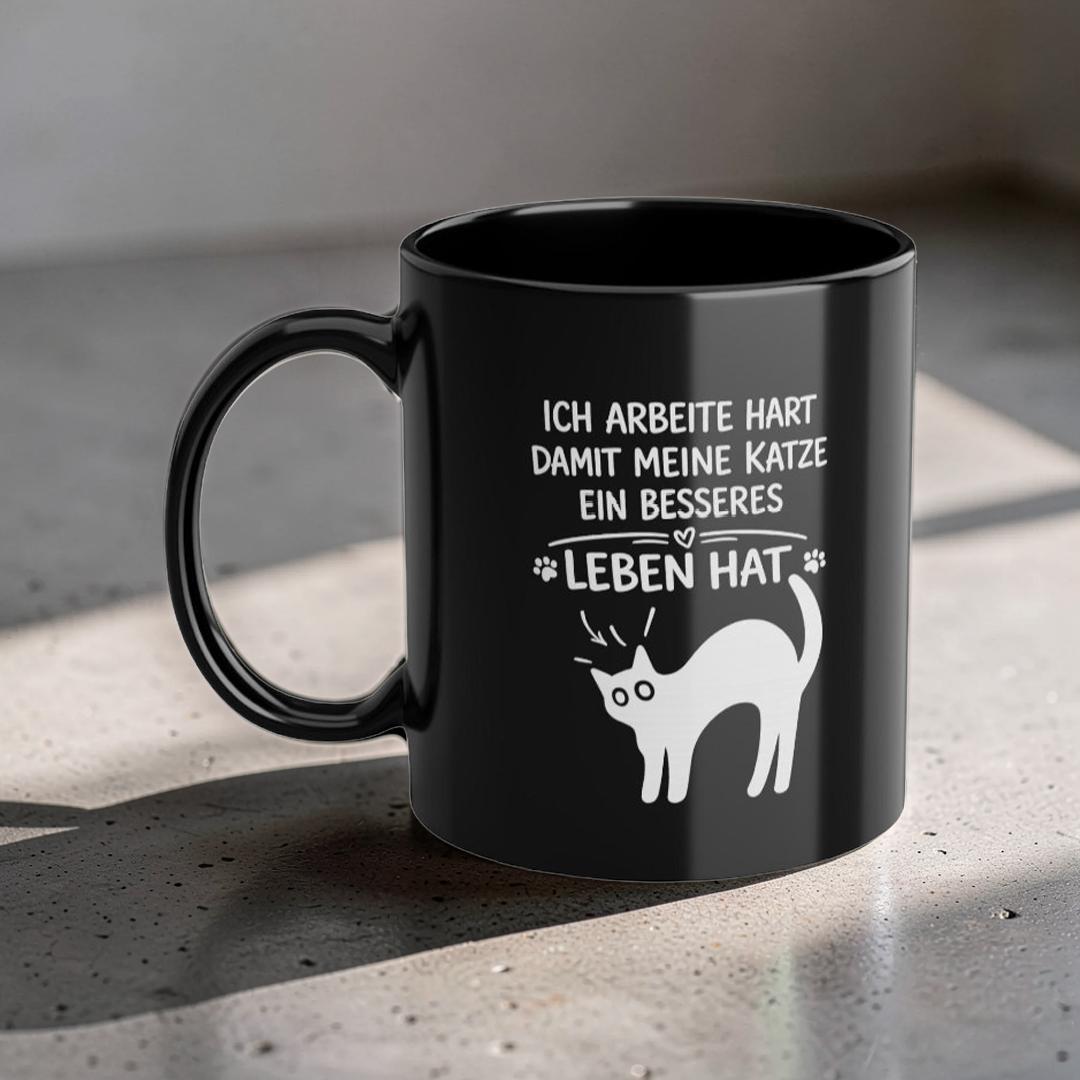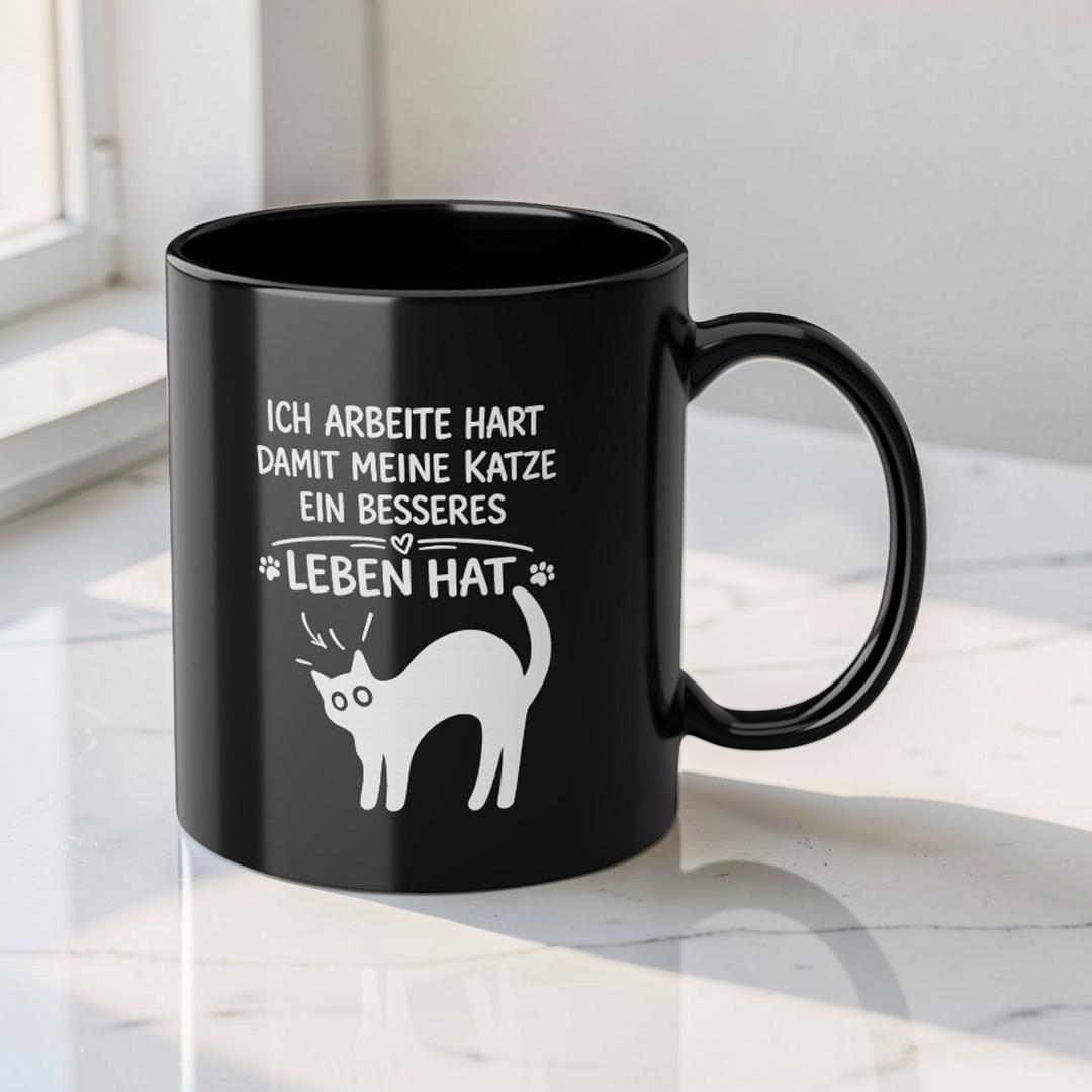 Dieser elegante schwarze Keramikbecher (325 ml) verleiht Ihrem Morgenritual eine ruhige, selbstbewusste Ausstrahlung. Die tiefglänzende Oberfläche bringt das weiße Motiv besonders klar zur Geltung, während das umlaufende Design dem Becher eine persönliche, durchdachte Note verleiht – wie eine kleine Erinnerung, die Sie durch den Tag begleitet.
